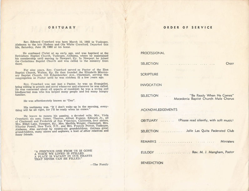 This space is dedicated to honoring the lives of family, friends, and loved ones who have passed. Each obituary holds a story — not just of who someone was, but how they lived, who they loved, and what they left behind. This archive is a reflection of my commitment to preserving memory, not just through dates and names, but through care, language, and presence. Whether written by me or saved from clippings, this collection exists so their names are not forgotten — and their lives remain part of the record.